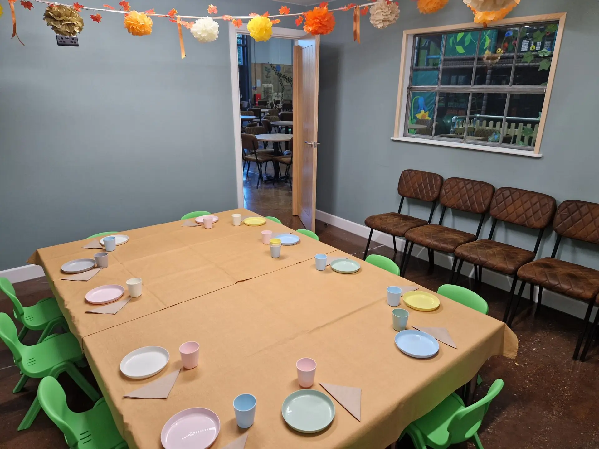 We offer a bright, dedicated party room with an additional overflow area for larger groups.